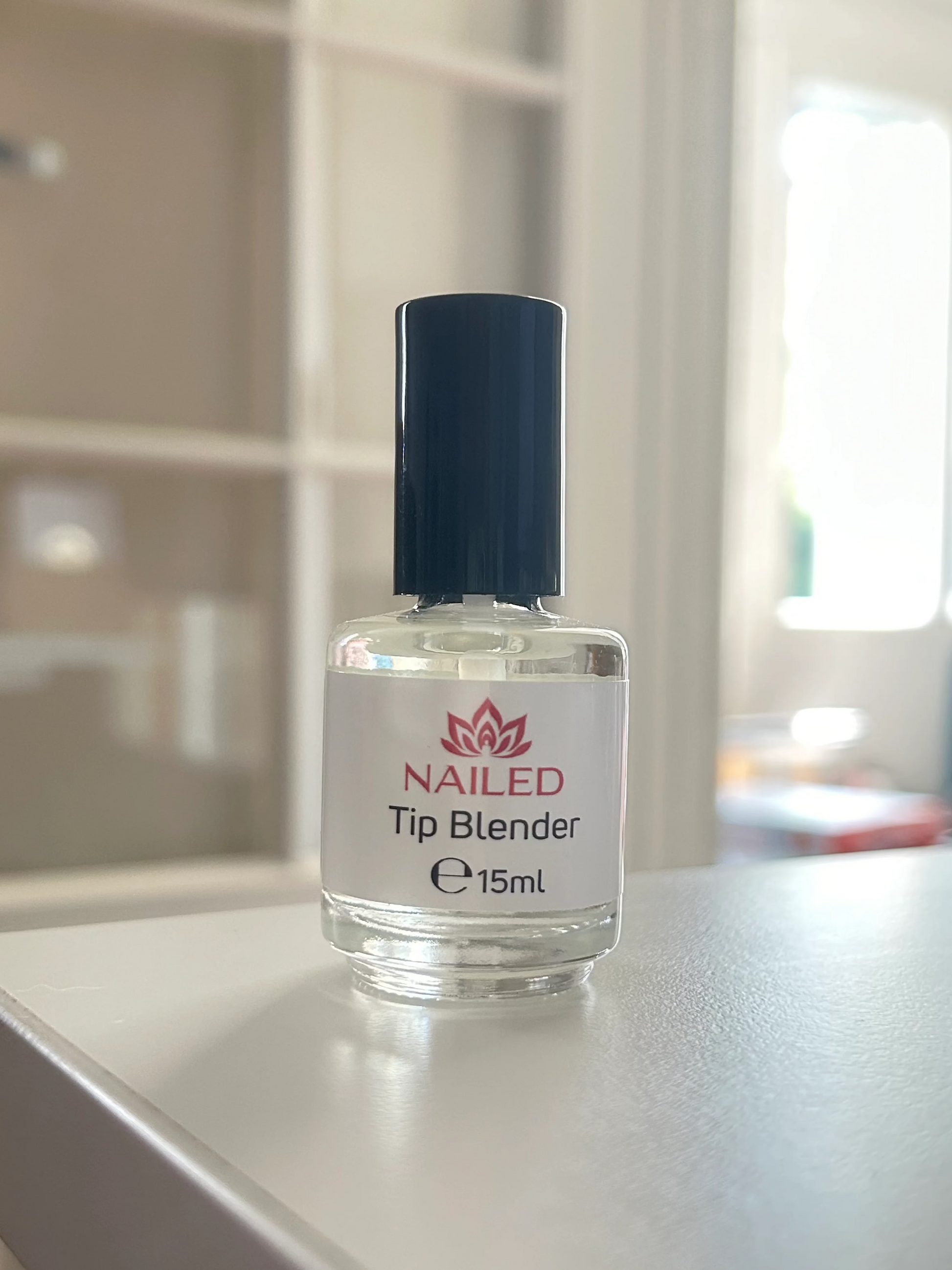Tip Blender tekee kynsitippien viilaamisesta nopeampaa ja helpompaa Tämä erikoisneste pehmentää keinotekoisen kynsitipin ja oman kynnen välisen liitoskohdan, jolloin viilaaminen käy kevyemmin eikä vaadi yhtä paljon mekaanista työtä.